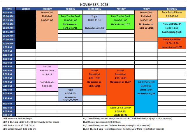 NOVEMBER 2025 RINGWOOD COMMUNITY CENTER SCHEDULE