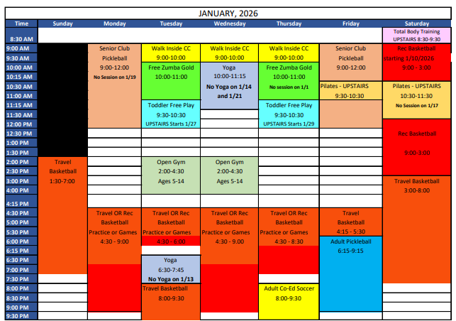 JANUARY 2026 RINGWOOD COMMUNITY CENTER SCHEDULE