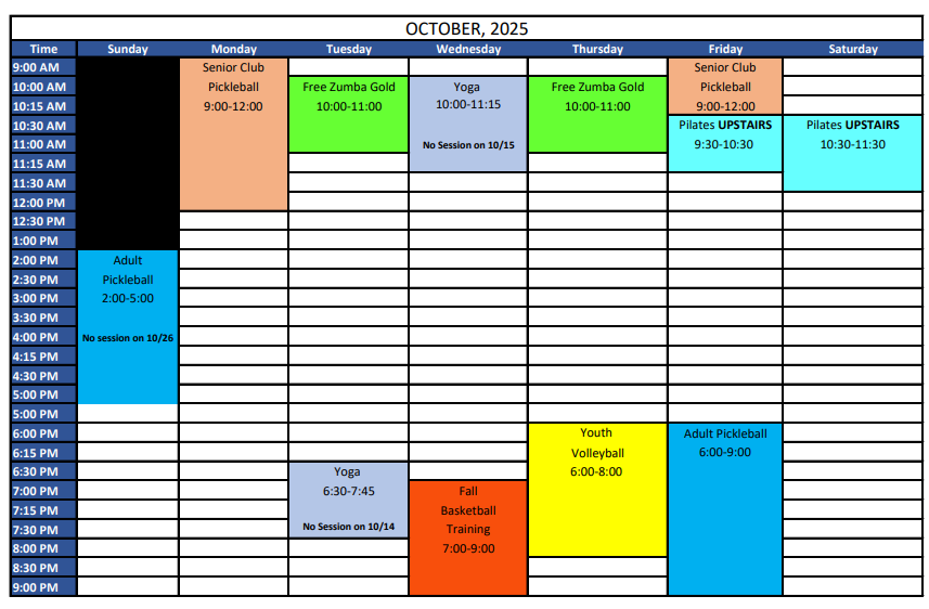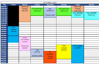 OCTOBER 2025 RINGWOOD COMMUNITY CENTER SCHEDULE